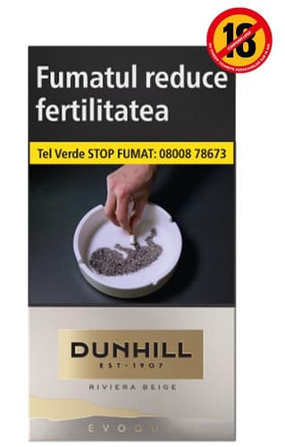 Descoperă țigările Dunhill Evoque Riviera Beige 100S, un produs din UE, ambalat la 1 bucată. Aceste țigări sunt destinate exclusiv persoanelor cu vârsta de peste 18 ani. Vă rugăm să consumați responsabil și să respectați legislația în vigoare privind produsele din tutun.