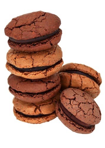 zahar, nuca, albus pasteurizat, cacao, amidon, aroma de rom (apa, rom 9% (65% vol.alc.), substante aromatizante naturale, propilen glicol, carboximetilceluloza, caramel, acid acetic, dextroza, maltodextrine, amidon modificat, glicerol, triacetat de glicerol), aroma de cafea (sirop de glucoza, caramel, sirop de zahar invertit, apa, extract de cafea 2%, amidon modificat, aroma), aroma de migdale amare; umplutura de ciocolata: smantana (smantana dulce 35% grasime, caragenan), ciocolata neagra min. 60% (masa de cacao, zahar, unt de cacao, lecitina din soia, aroma naturala de vanilie),