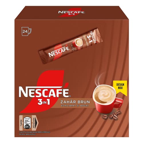 Nescafe Cafea instant 3in1 Zahar Brun 24 plicuri x 16.5g
