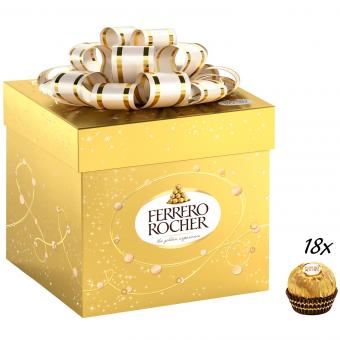 With the Ferrero Rocher gift box, you are always the center of attention. The delicious chocolate and hazelnut specialties seduce your senses with aromatic hazelnuts in delicious nougat cream, which are covered with a crispy wafer and delicate milk chocolate, making the golden ball a unique treat.