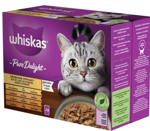 Whiskas Pure Delight hrana umeda pentru pisici adulte cu carne de pasare in aspic 12 x 85 g