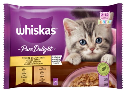 Whiskas Pure Delight hrana umeda pentru pisici junioare cu carne de pasare in aspic 4 x 85 g