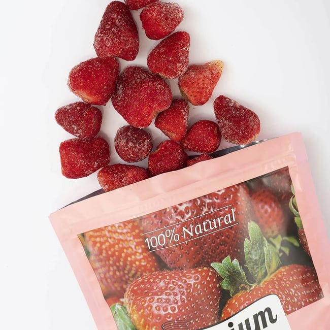 Premium ingredients frozen instantly without additives, 100% natural, packed in a resealable ziplock type package, reusable.