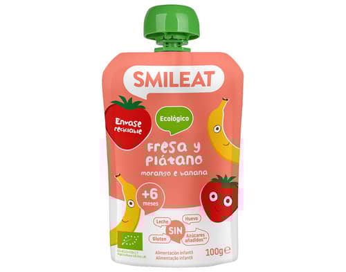 Smileat Gustare piure ECO din banane si capsuni, +6 luni