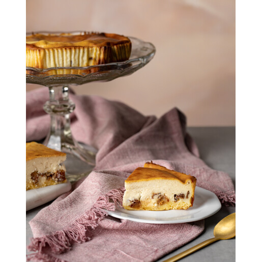 Faina de grau T45, branza de vaci, ou melanj pasteurizat,frisca naturala, unt 82%, lapte 3.5%, zahar, stafide, vanilie, gris, praf de copt si sare.