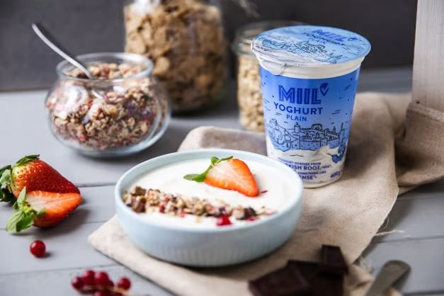 Creamy white Miil yogurt with a fat content of 3.7%.
