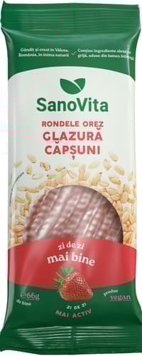 Rice rounds with strawberry glaze are a delicious snack or dessert without artificial colors, vegan, rich in fiber, with superior Lupin protein, containing B vitamins and full of energy. They are an important source of dietary fiber with a prebiotic effect and offer a boost of energy with a sweet, refreshing taste.