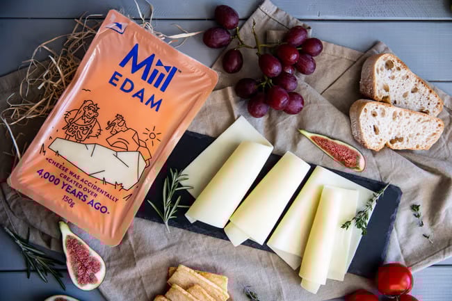Miil Edam, brânză naturală și integrală în felii, 45% grăsime în substanța uscată. Este o brânză semitare, maturată, cunoscută pentru aroma sa intensă. Aproximativ 10 litri de lapte sunt folosiți pentru a produce 1 kg din această brânză delicioasă, iar brânza este maturată sub formă de blocuri de 100 kg.