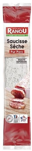 Peel the dry sausages before eating. Because a healthy diet is important, Monique Ranou pays special attention to developing its dry sausages in order to offer you quality products every day. They are made from 100% pork and are matured at an altitude of 750m. For a guarantee of traceability, the product is made from pork born and raised in France.