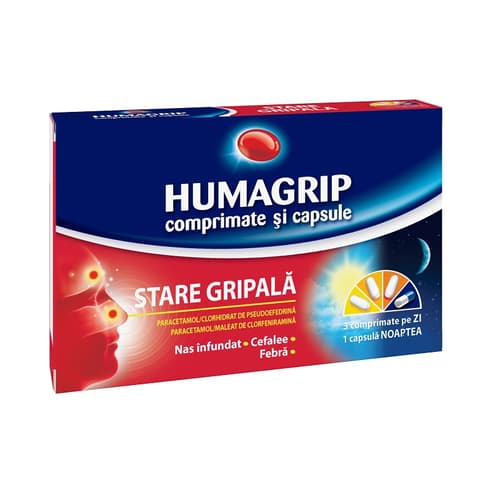 HUMAGRIP tablets and capsules are indicated for the short-term symptomatic treatment of flu conditions accompanied by headache and/or fever and a feeling of "stuffy nose".