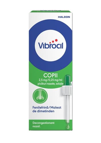 Picături nazale Vibrocil de la GSK, concepute pentru a oferi ameliorare rapidă și de lungă durată pentru congestia nazală și rinoree. Sunt eficiente în cazul răcelilor, rinitelor acute și cronice, febrei fânului sau altor rinite alergice, precum și în sinuzite. Ajută la desfundarea căilor nazale fără a afecta activitatea cililor. Vine într-un flacon de 15 ml.