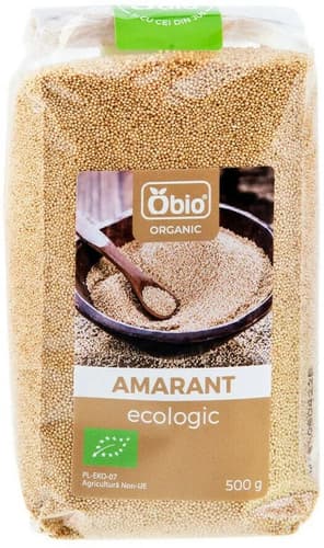 Amarantul este o pseudocereala avand boabele foarte mici. Se gateste la fel ca si quinoa sau ca si orezul, pe post de garnitura. Amarantul Obio provine din culturi ecologice certificate, fara pesticide.