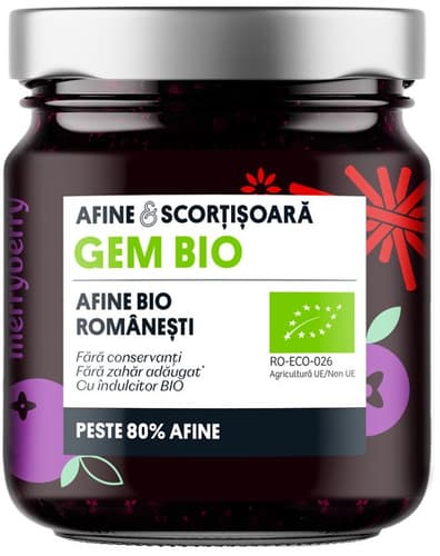 Gustul minunat al afinelor BIO MerryBerry se regaseste acum in gemul 100% natural pe care l-am pregatit cu grija din recolta bogata si sanatoasa de la ferma noastra.