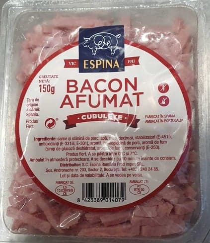 ESPINA Bacon afumat cuburi (2x75G )150 gAcest produs nu mai este disponibil.Țara:conform ofertei actualePentru mai multe informații despre produs te rugăm să contactezi echipa de asistență clienți.