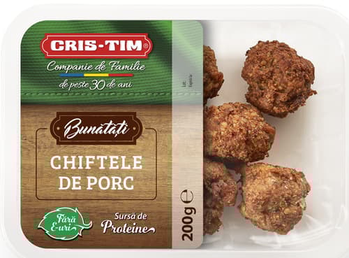 When it comes to traditional dishes, Pork Meatballs from the Bunătăți range by Cris-Tim are the ideal choice for a hearty lunch or a quick, flavorful dinner. Prepared according to a classic recipe, with minced pork, onion, garlic, natural spices, and fresh herbs, these meatballs are uniformly browned for a golden crust and a tender interior. They are versatile, easy to serve, and loved by the whole family – from the little ones to the grown-ups.