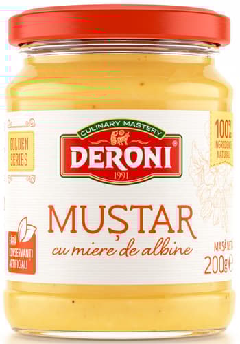 Ingrediente: apa, seminte de mustar macinate fin, Balsamico (otet din alcool, must de struguri) miere de albine 14,1%, ulei de floarea-soarelui, sare, condimente naturale.