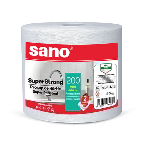 Sano Prosop din hartie monorola, 200 metri, portionata in 910 foi. Rezistenta deosebita si putere ridicata de absorbtie. Ideal pentru absorbtia lichidelor, a grasimii din/ de pe alimente, pentru curatarea