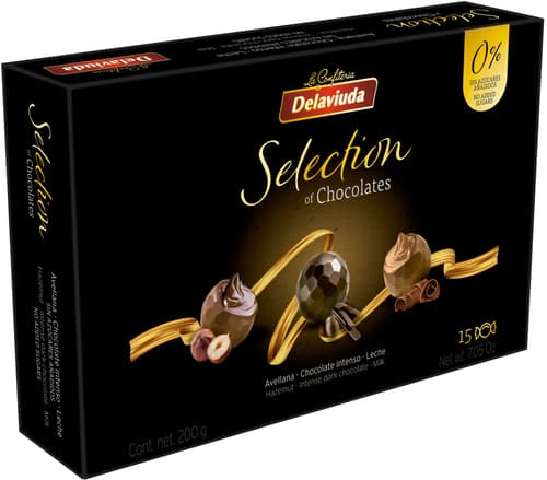 Delaviuda Praline asortate fara zahar de ciocolata cu lapte, ciocolata neagra si ciocolata cu alune de padure