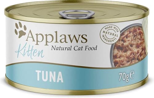 Applaws Junior Wet Cat Food with Tuna 70g contains nothing more than the ingredients listed and is a 100% natural complementary food for kittens. Applaws wet cat food can be served on its own or added to your cat's favourite dry food. How much should I feed my cat per day? Our Applaws cat food can be served on its own or added to your cat's favourite dry food. Adjust the portion size according to your cat's weight. For the 70g can: Cat size: up to 3kg ½ can Cat size: 3 - 5kg 1 can Cat size: 5kg+ 1 and ½ cans Storage conditions Follow the instructions on the packaging.