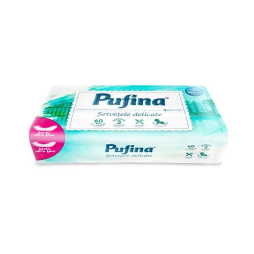 Pufina Travel Pack Servetele faciale ultra soft, 100% celuloza, 60 buc