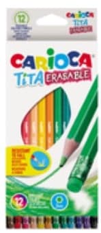 Carioca Tita Erasable Creioane colorate, hexagonale, flexibile, 12 culori, cu guma