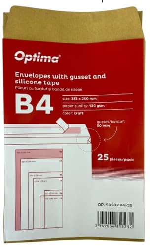 Optima Plic C4 (324x229mm), cu burduf 40mm, lipire siliconica, eco kraft