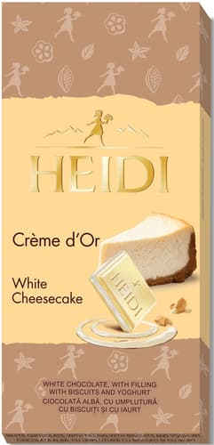 Ciocolata alba cu umplutura de biscuitii si iaurt HEIDI Crème D’Or Cheesecake, 90g
