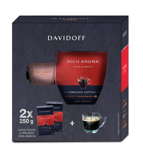 Davidoff Caffee Rich Aroma x2 + Cana Espresso cafea prajita si macinata vidata