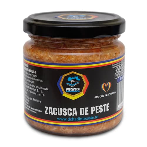Savor a unique traditional product, Fish Zacusca from Delta dintre Sate. This zacusca is a perfect combination of roasted vegetables and fresh fish from the Danube Delta, offering you an authentic taste, full of flavor. Each jar is a culinary experience that brings together Romanian traditions and natural ingredients. An excellent appetizer, easy to serve and ready to delight your taste buds, regardless of the occasion.