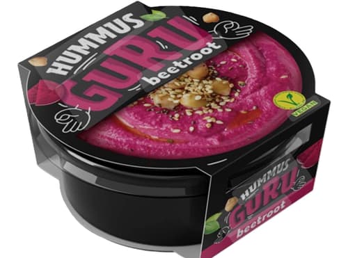 Năut fiert 49%, Sfeclă roșie 33%, ulei de rapiţă, pastă de susan, zahăr, sare, regulatori de aciditate (acid citric, bicarbonat de sodiu), condimente, colorant natural, conservant alimentar (oţet, sorbat de potasiu).