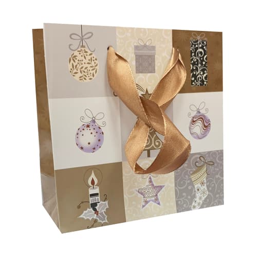 Dimensiune: 13,5x13,5x6 cm, hartie 210 gr, tipar policromie, plastifiere lucioasa, snur panglica satin