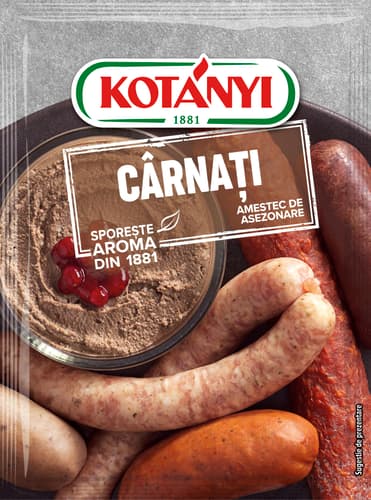 Aroma încântătoare din bucătărie: amestecul de asezonare pentru cârnați de la Kotányi cu coriandru, chimen, piper și ienibahar. Conferă o aromă minunată unor preparate precum lebăr, sângerete și cârnați albi, precum și tobă, pateuri, carne afumată și carne maturată.