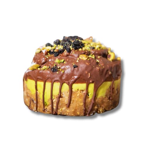 Rawmantic Panettone raw-vegan, de post fara zahar adaugat cu aroma de fistic si invelis de ciocolata