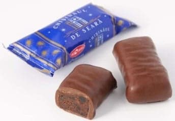 Bomboane Bucuria Chișinăul de Seară cu corp din prune uscate, acoperite cu glazură de ciocolată.