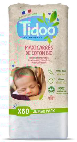 Tidoo pads are ideal for babies' sensitive skin thanks to their composition of 100% organic cotton, a natural fibre, chlorine-free and GMO-free.