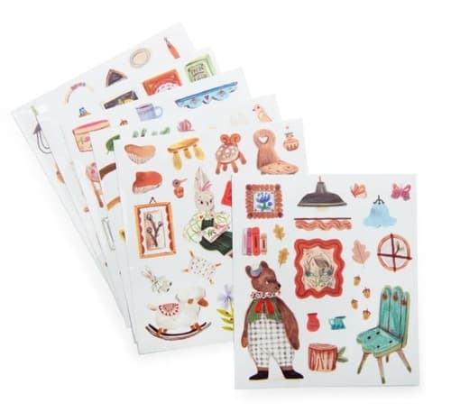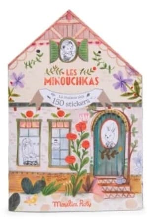 A colouring book in the shape of a house with 150 stickers. Colour in the different places that Minouchkas and her friends visit and decorate them with stickers.