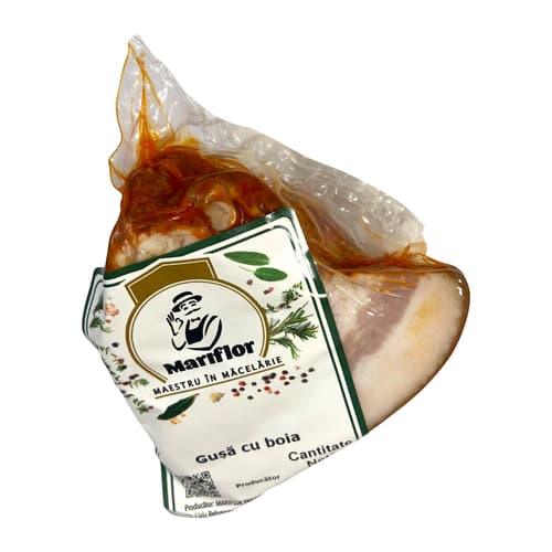 Gusa de porc, sare, zahar, condimente (boia-0.5 %, piper, coriandru, usturoi), extract de condimente, legume deshidratate (usturoi), zaharuri (dextroza), stabilizatori (tri- si polifosfați de sodiu, acetat de sodiu), antioxidant (ascorbat de sodiu), conservant (nitit de sodiu), arome, extract de drojdie.