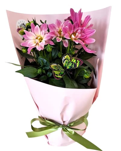Dalie roz ghiveci 14 cm diametru H 26 cm