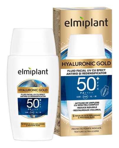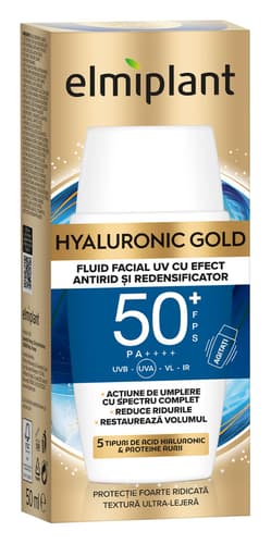 Elmiplant Hyaluronic Gold Fluid SPF 50+ Facial UV cu efect antirid si redensificator