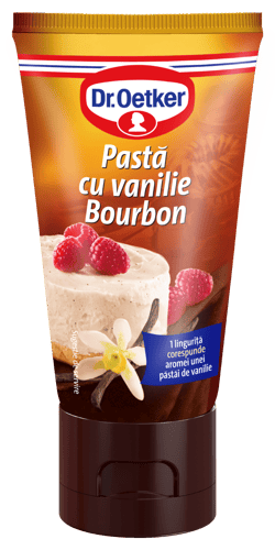 sirop de zahar invertit, 13% extract de vanilie Bourbon, apa, zahar, 1,5% seminte de
