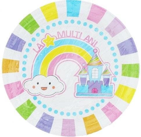 Set Farfurii party "La Multi Ani", curcubeu, 18 cm