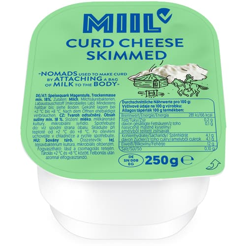 Looking for a great partner in the kitchen? Miil skimmed cottage cheese is here for you! Soft, fluffy, full of protein and with minimal fat content! A cheese that helps you stay in shape and spoils you with a delicate taste. Perfect for athletes, gourmands, and anyone who wants a light snack. Miil skimmed cottage cheese contains only 0.2g of fat.