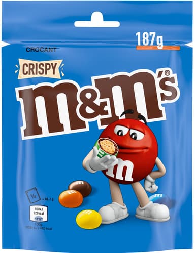 M&M's Crispy Miez din orez crocant in ciocolata cu lapte cu glazura colorata de zahar