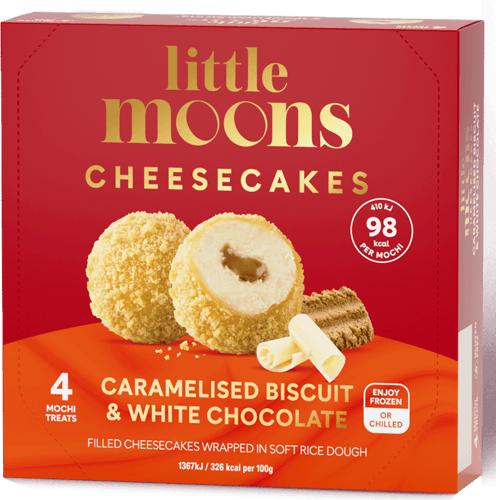 Little Moons Cheesecake cu biscuiti caramelizati si ciocolata alba