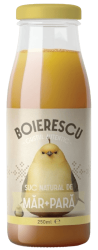 Suc natural de mere cu pară, presat la rece, nefiltrat, fără zahăr, fără conservanți. Un duo delicat ce unește gustul dulce al merelor cu finețea aromată a perelor coapte. Fiecare fruct este ales cu grijă, iar tehnologia de presare la rece păstrează vitaminele și prospețimea naturală. Perele sunt o sursă excelentă de fibre și vitaminele K, A, E, B, minerale precum Potasiu, Calciu, Magneziu, Fier, contribuind la o digestie sănătoasă și la întărirea sistemului osos. O alegere rafinată, ce îmbină gustul natural cu beneficiile nutritive. . Produs pasteurizat. Conținut suc natural de mere 90%, suc natural de pere 20%.