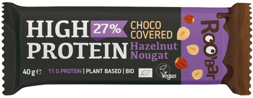 Roobar High protein hazelnut bar covered with chocolate