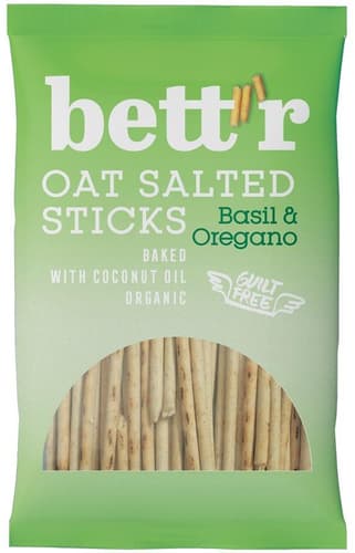 Oat sticks with basil and oregano, from Bett'r. Made with 100% organic ingredients, these sticks are completely plant-based and palm oil-free. Baked with sourdough for a crunchy texture and infused with basil and oregano for a Mediterranean taste. Bett'r is a trusted brand offering a wide range of snacks and food products suitable for anyone, anytime, and anywhere. Bett'r products are organic, vegan, free from added sugar, and palm oil-free, thus guaranteeing the quality and health of consumers. Among the products offered are Bett'r BIO Wafer with cocoa and hazelnut cream, Bett'r BIO Granola with almonds and chocolate, Bett'r BIO Coconut Chips with salted caramel, Bett'r BIO Brownie Mix, Bett'r BIO Hummus Mix, Bett'r BIO Strawberry and Cashew Spread, Bett'r BIO Cocoa and Hazelnut Spread, and Bett'r BIO Protein Spread with cashew and vanilla. Bett'r is committed to offering the highest quality products, adhering to sustainability standards and animal welfare. With a tradition of excellence, Bett'r continues to be a leader in the organic and vegan food industry. Smart Organic is a renowned producer, known for its commitment to quality and sustainability. Although detailed information about the company's history was not found, it is evident that Smart Organic places a special emphasis on high production standards and animal welfare. Their products are made with care and respect for nature, thus ensuring the best quality for consumers. Smart Organic strives to be a leader in its industry, offering products that meet the strictest sustainability and ethical standards.
