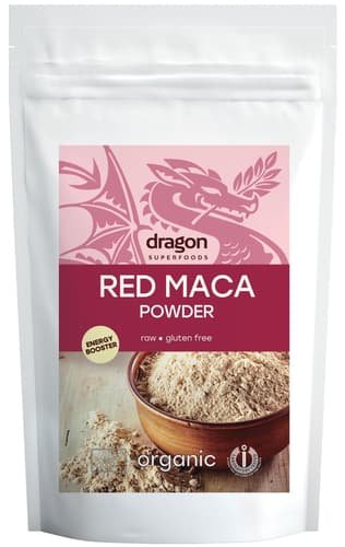 Maca roșie este a doua cea mai rară dintre toate varietățile de maca, reprezentând aproximativ 25% din recolta anuală. Pudra de maca roșie Dragon Superfoods are un gust mai blând și mai delicat, care poate fi descris ca fiind similar cu un caramel subtil.