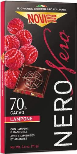 Novi Extra dark chocolate 70% cocoa with raspberries and toasted almonds