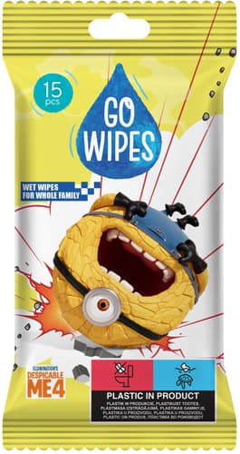 GoWipes Wet wipes "Minions" with antibacterial effect, 15 pcs